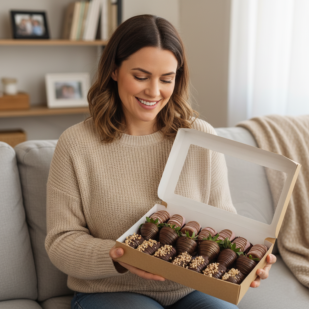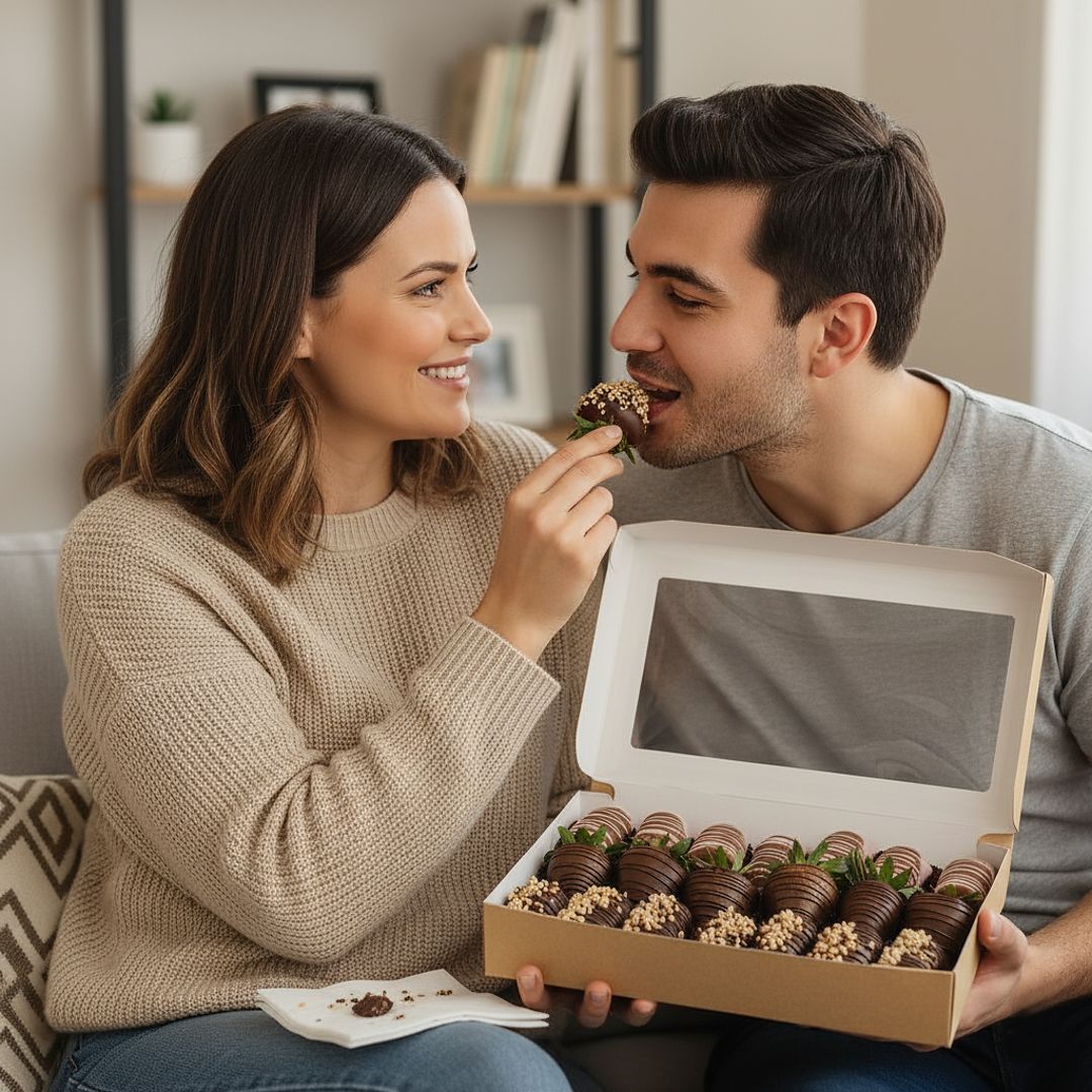 Čokoládové Milování: Oba druhy ovoce jsou potaženy kvalitní, sametově hladkou čokoládou – ať už tmavou, symbolizující hloubku citu, nebo bílou, symbolizující čistotu.
