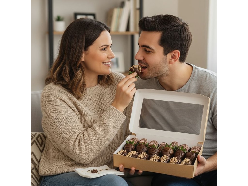 Čokoládové Milování: Oba druhy ovoce jsou potaženy kvalitní, sametově hladkou čokoládou – ať už tmavou, symbolizující hloubku citu, nebo bílou, symbolizující čistotu.