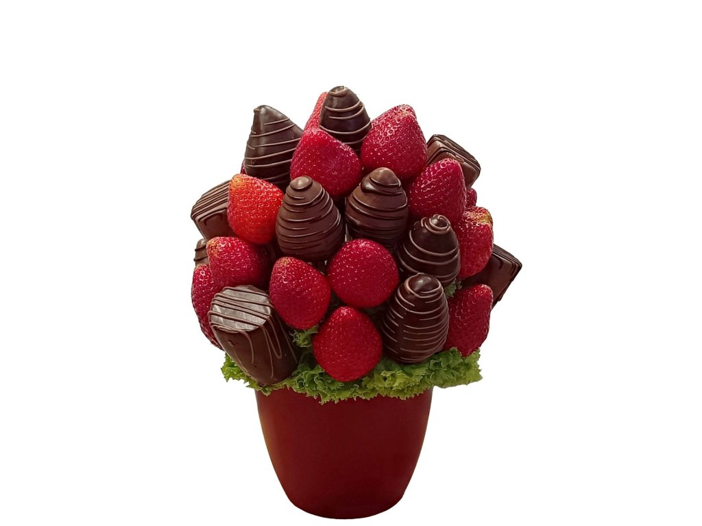 Darujte jedinečný zážitek s kyticí z čerstvých jahod a banánů obalených v prvotřídní čokoládě. Ručně připravená a pečlivě zdobená kytice z jahod a banánů v čokoládě kombinuje sladkost ovoce s lahodnou čokoládou, aby vytvořila dokonalý dárek. Ideální volba pro oslavy, výročí či romantické okamžiky, která potěší smysly i srdce.