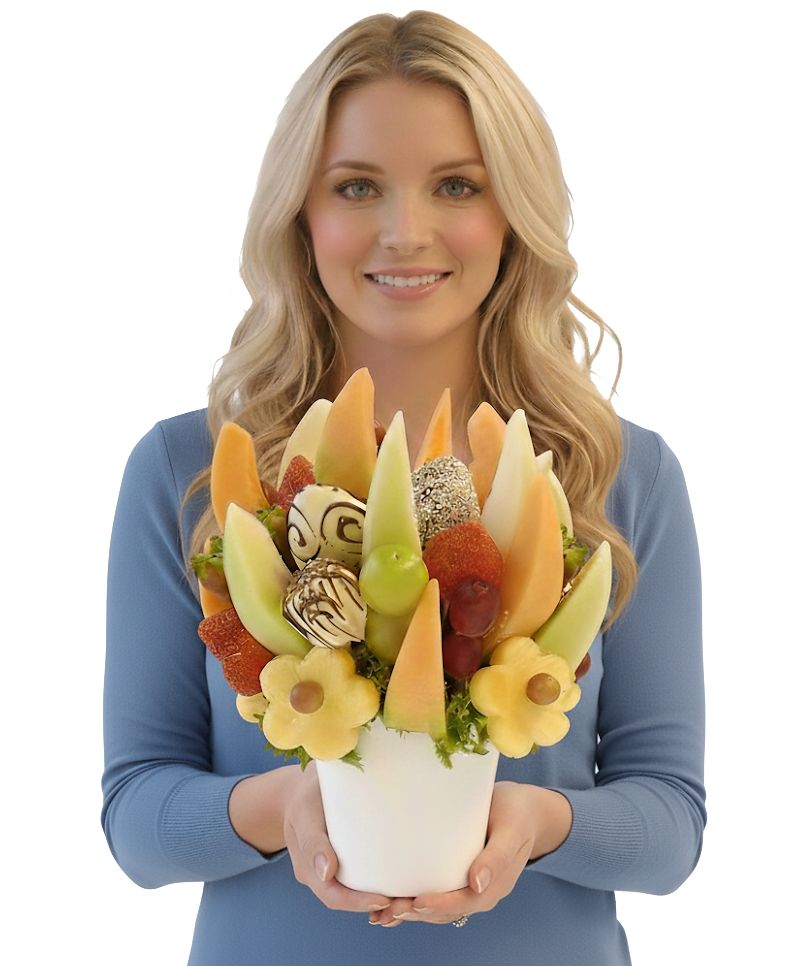 Objevte jedlé kytice v různých variantách a kombinacích. Kvalitní, čerstvé ovoce netradičně upravené, poskládané, ochucené, zdobené. Vyberte si variantu dle Vašich chuťových preferencí.