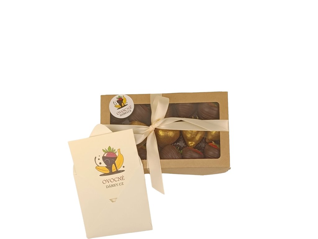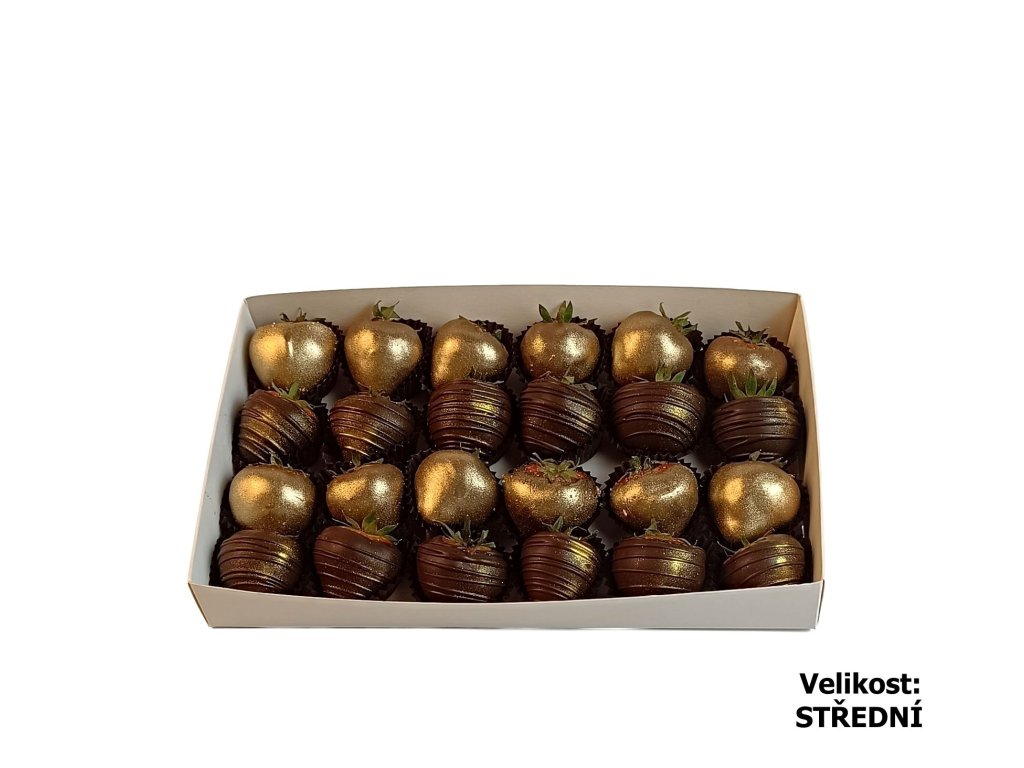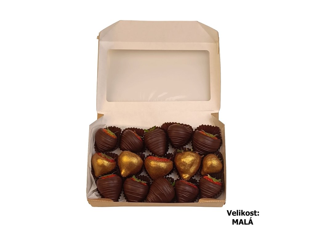 Objevte exkluzivními Zlatými jahody! Vybrané čerstvé jahody obalené v tmavé čokoládě a zdobené jedlým zlatem představují něco výjimečného. Každá krabička je ručně připravovaná s důrazem na detail, aby vytvořila nezapomenutelný dárkový zážitek. Perfektní volba pro významné události, VIP setkání nebo když chcete někomu ukázat, jak výjimečný pro vás je.