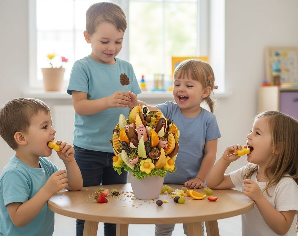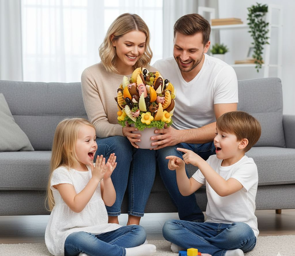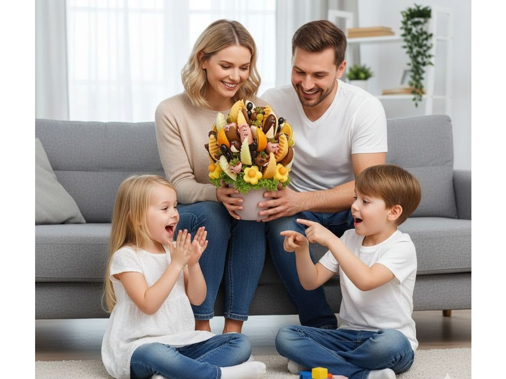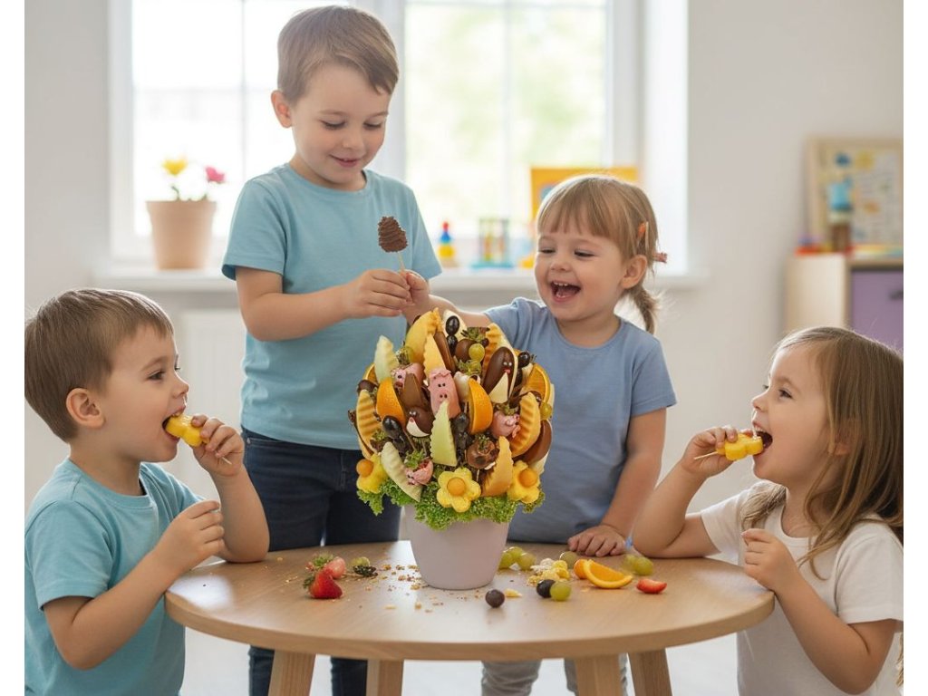 Není to jen dárek. Je to pozvánka k rodinné hře, kde se uprostřed rozkvetlého ovoce schovávají roztomilí kamarádi, kteří čekají, až je děti objeví. Dejte svým nejmenším památku na dětství, která voní po jahodách a čokoládě, a která je daleko lepší než jakákoliv umělá sladkost. Darujte jim lásku ukrytou ve veselé zahradě!