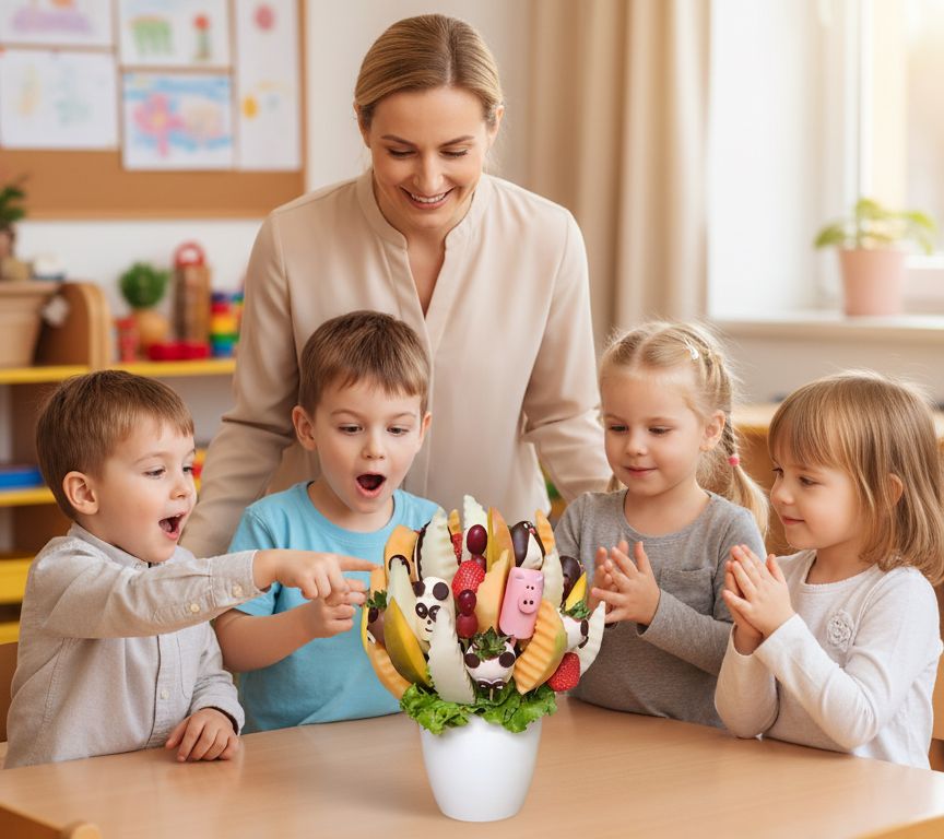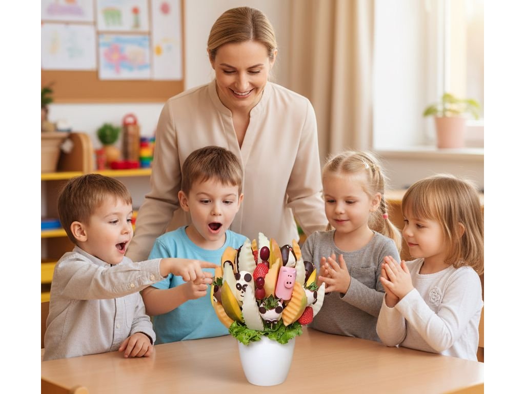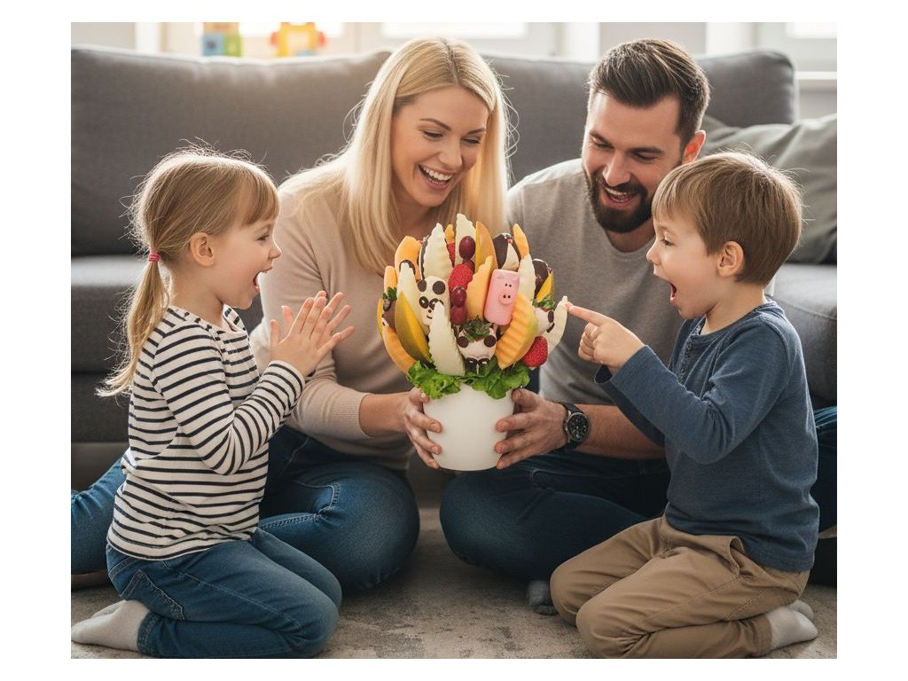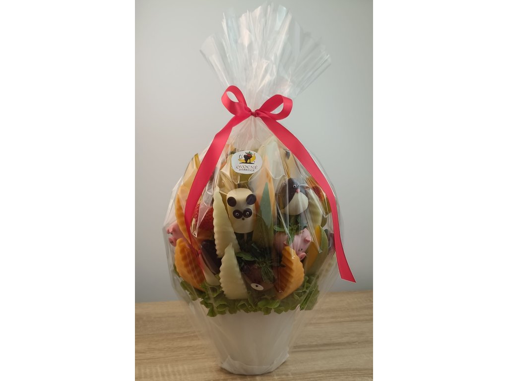 Kytice "Zvířátka v Ovoci" je víc než jen kytice. Je to kouzelná ovocná ZOO! Je to zábavná hra na schovávanou, kde se uprostřed křehkých plátků manga, melounu a hroznů skrývají veselá zvířátka z čokolády. Darujte jim zážitek, který je zdravější než dort a zábavnější než bonbóny.